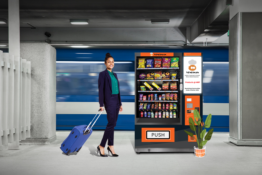 Vendiman’s SMRKs or smart vending machines offer a wide curated range of nutritious snacks, beverages, RTE (Ready to eat products), baked snacks, energy bars and much more.